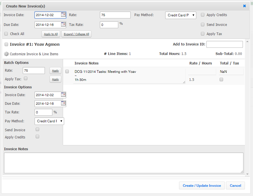 Viktor, The css errors are clearly not intended and will be resolved. The logic behind the interface may seem overwhelming or unnecessary when you are looking at the generation of a single invoice, however the importance becomes clear when you are creating multiple invoices from the dialog. This new system provides the ability to create invoices across multiple projects from one dialog. New new dialog is standardized between both the general "Timelogs" page, as well as the "Project > Timelog" tabbed page. |