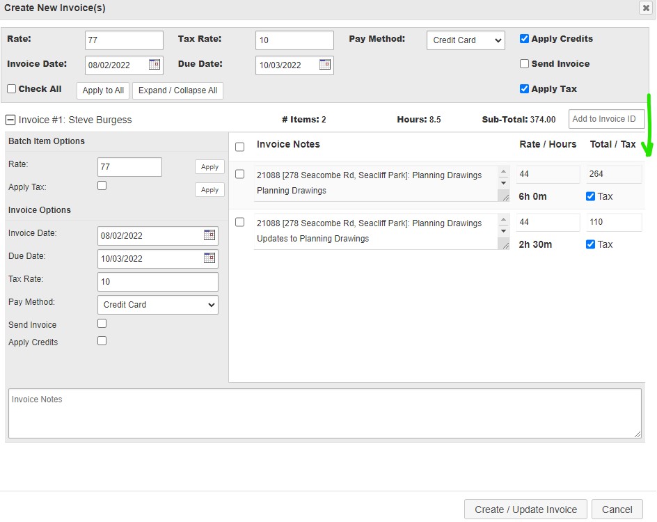 | Description | It would be great to have the option to add an alternative price for an action when creating an invoice. A third column that would initially populate the total but you can override the value to increase or discount the service. Even better, if this extra charge value could be noted somewhere as a profit. Example: A set of drawings are being drawn and the timer function used for the action. I stop the timer when I've completed the job. But I have completed the job in time under what I quoted the customer. If I could select all the actions (time entries) choose Invoice Rows and then override the value I charge for that action (time block). The column could be called 'Sale/Tax'. This Sale column would be the value visible on the invoice and the sub-total would reflect. On the dashboard of the project there could be a a profit value showing how much in front or behind this job was. Not only does this help with charging the client custom amounts it also indicates performance. | ||||||||||||